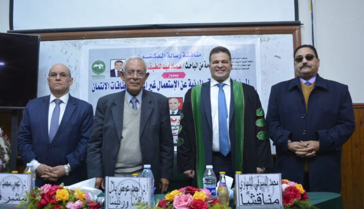 وتكونت لجنة المناقشة والحكم من كلا من الأستاذ والدكتور أحمد عوض بلال أستاذ القانون الجنائي وعميد كلية الحقوق الأسبق بجامعة القاهرة ( مناقشا ورئيسا ) والأستاذ الدكتور عمر محمد سالم أستاذ القانون الجنائي وعميد كلية الحقوق السابق جامعة القاهرة ووزير الشؤون القانونية والنيابية الأسبق( مشرفا ) ، والمستشار دكتور محمد الدسوقي الشهاوي رئيس بمحكمة استئناف القاهرة ( مناقشا )